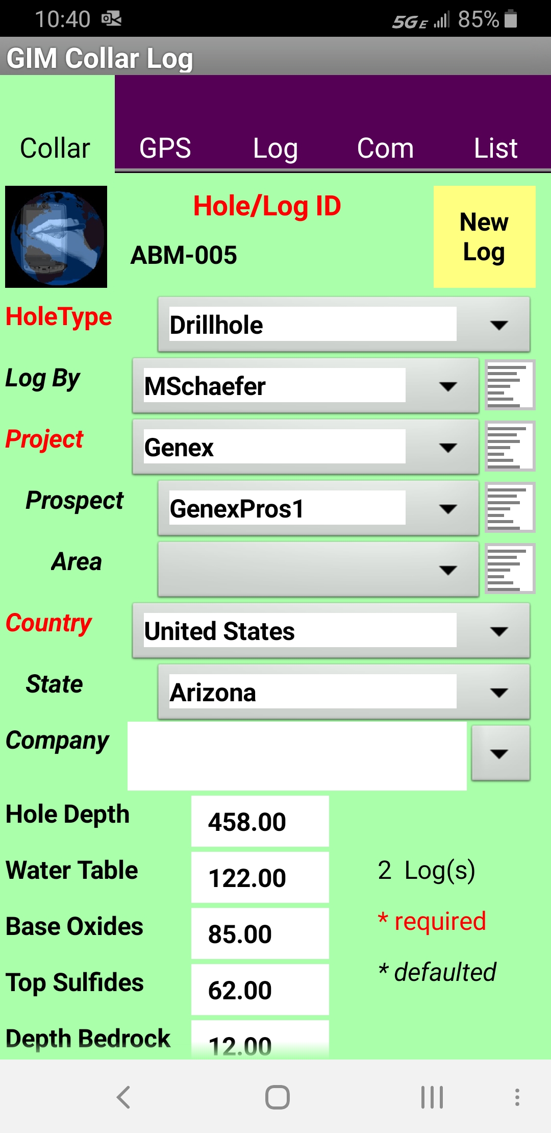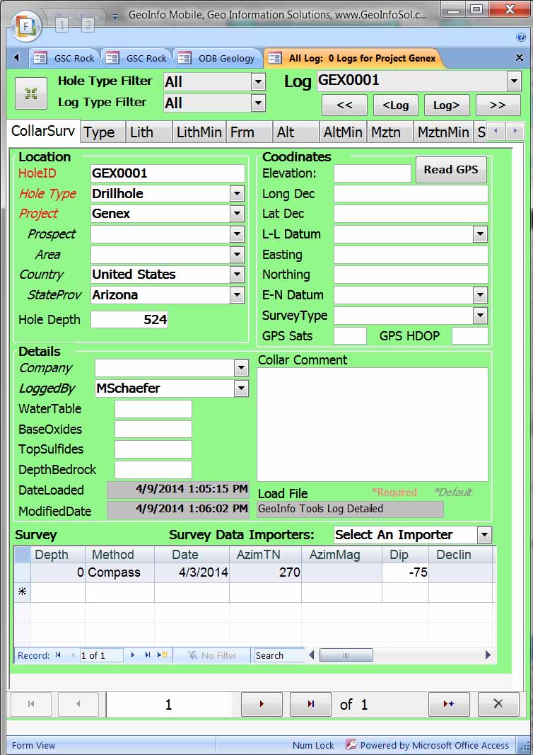 Drill Hole and Trench Logger