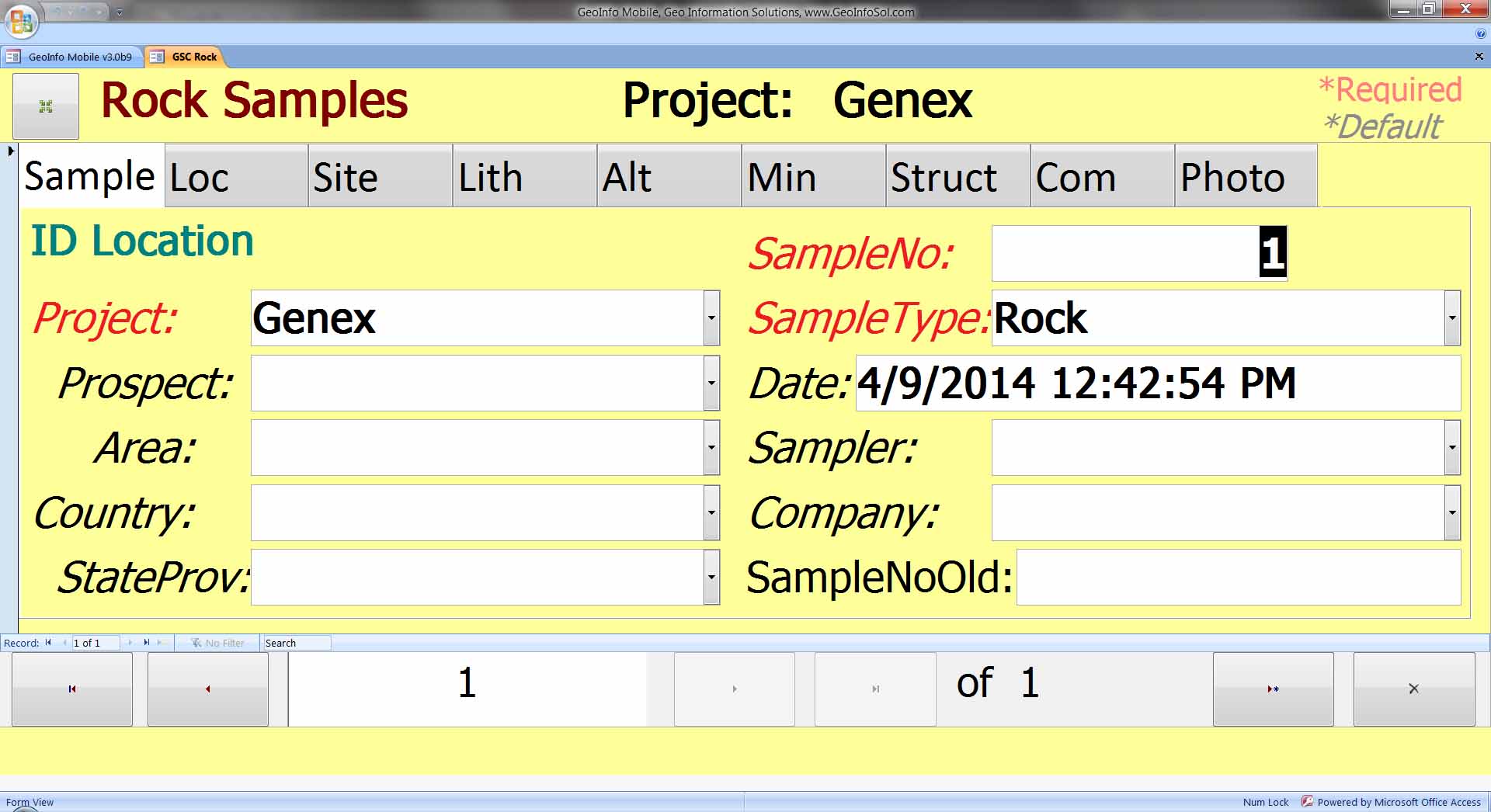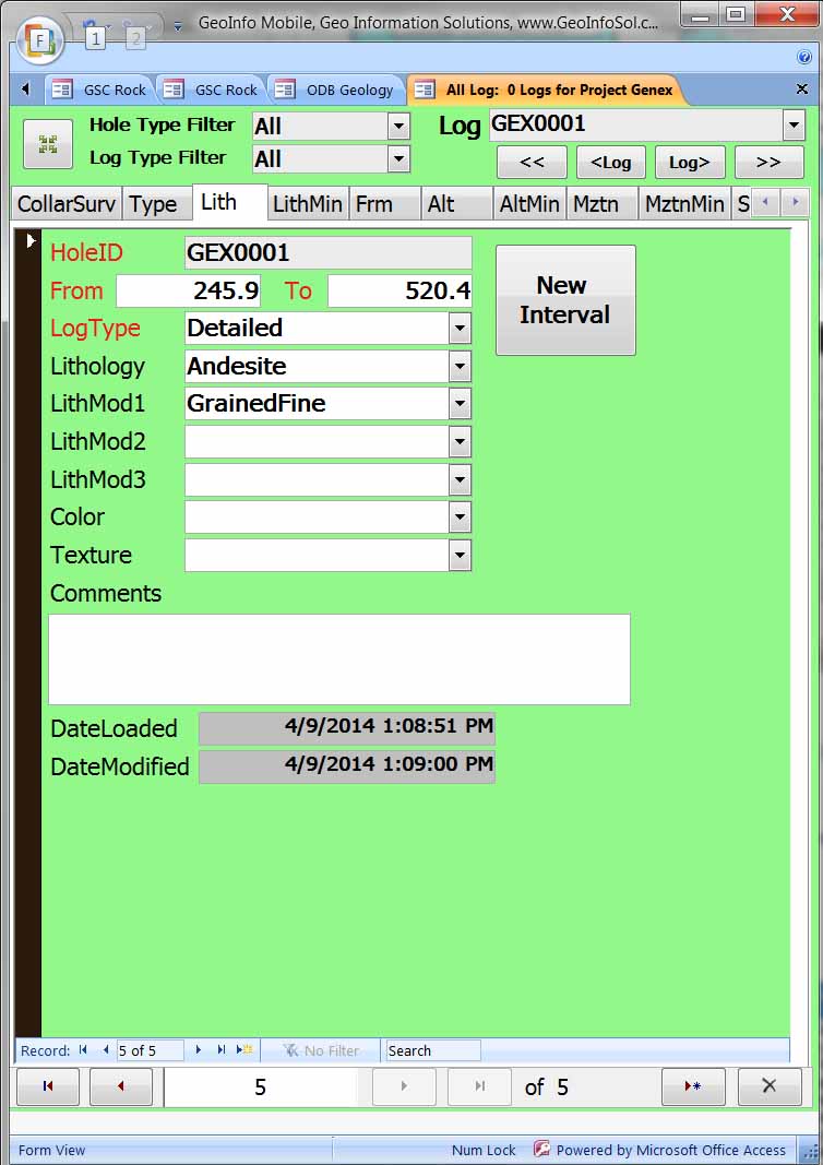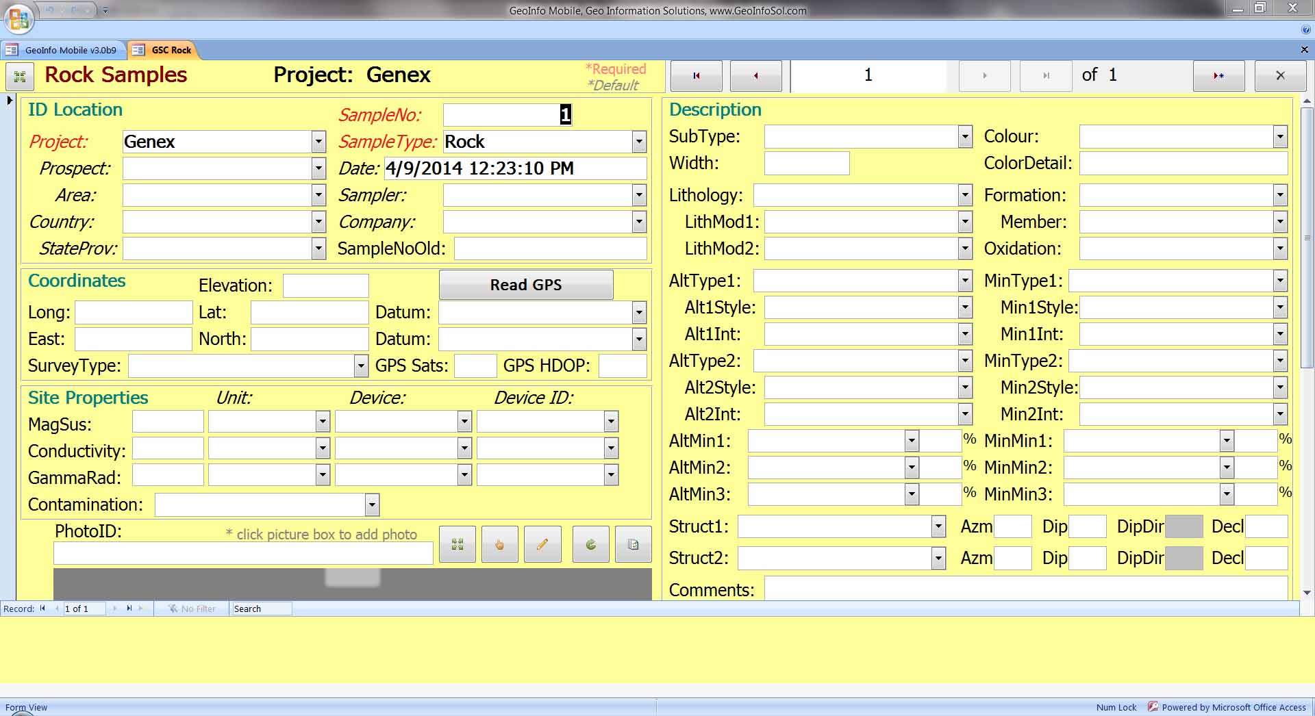 GeoInfo Mobile is powered by Microsoft Access